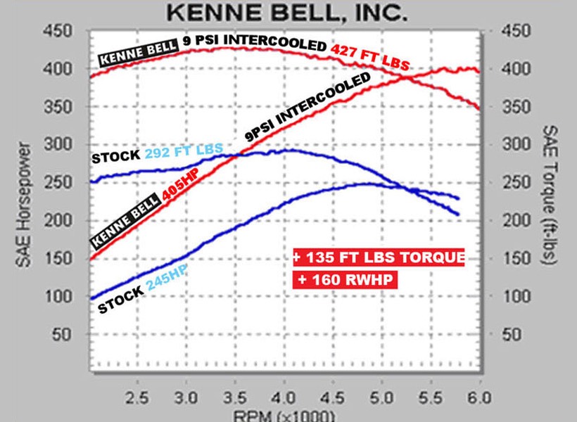 *With Kenne Bell Cool Air Kit, 90mm Meter, 75mm Throttle Body “Big Tube” Kit.